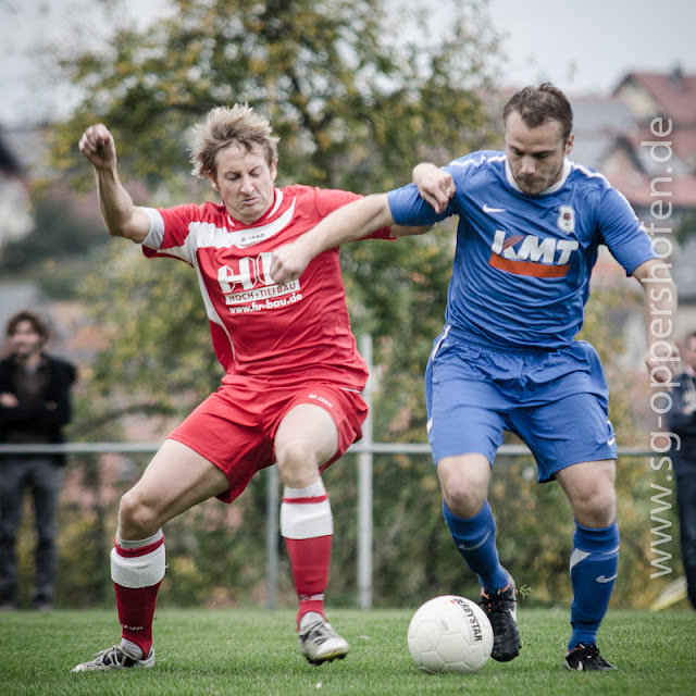 (pf)Nach Spielbeginn entfaltete Steinfurth seine Klasse und entführte verdient drei Punkte aus Oppershofen. Hauptproblem an diesem Tag war die Heimdeffensive bzw. das allgemeine Deffensivverhalten. Relativ ungestört konnte das offensive Mittelfeld der Gäste seine Kreise ziehen. Auf Grund der fehlenden Aggressivität wurde nie ein wirklicher Zugriff ausgeübt und so konnten alle Angriffe bis in die Gefahrenzone um das Gehäuse von SGO Keeper Kalkbrenner getragen werden. Nach einem vermeidbaren Freistoß in der 17. Spielminute fällt dann das 1:0 für die Gäste. Esposito legt den Ball knapp an der Mauer und an Kalkbrenner vorbei. In der 21. Minute erhöhen dann Marcel Müller und in der 25. Minute Sandro Beutnagel auf 2:0 und 3:0. Christoph Müller kann dann in der 29. Spielminute per sehenswertem Schlenzer zum 3:1 Anschlusstreffer netzen. Zwei Minuten vor dem Seitentausch kann dann allerdings Dominic Herbert den alten Abstand wieder herstellen. Direkt nach der Halbzeit dauerte es dann nicht lange, bis die Gäste zum 5:1 erhöhen können. Voss wird aus dem Gewühl heraus am 16er angespielt und hat keine Mühe einzuschieben. Hiernach schalteten die Gäste einen Gang zurück. In Folge dessen erspielte sich die SGO einige gute Torchancen, kann diese aber, wie so oft, nicht nutzen. Viel besser nutzt dann wieder Sandro Beutnagel eine Freistoßgelegenheit in der 76. Minute. Unhaltbar setzt er den Schuss neben den Pfosten. Danach passierte nicht mehr viel.